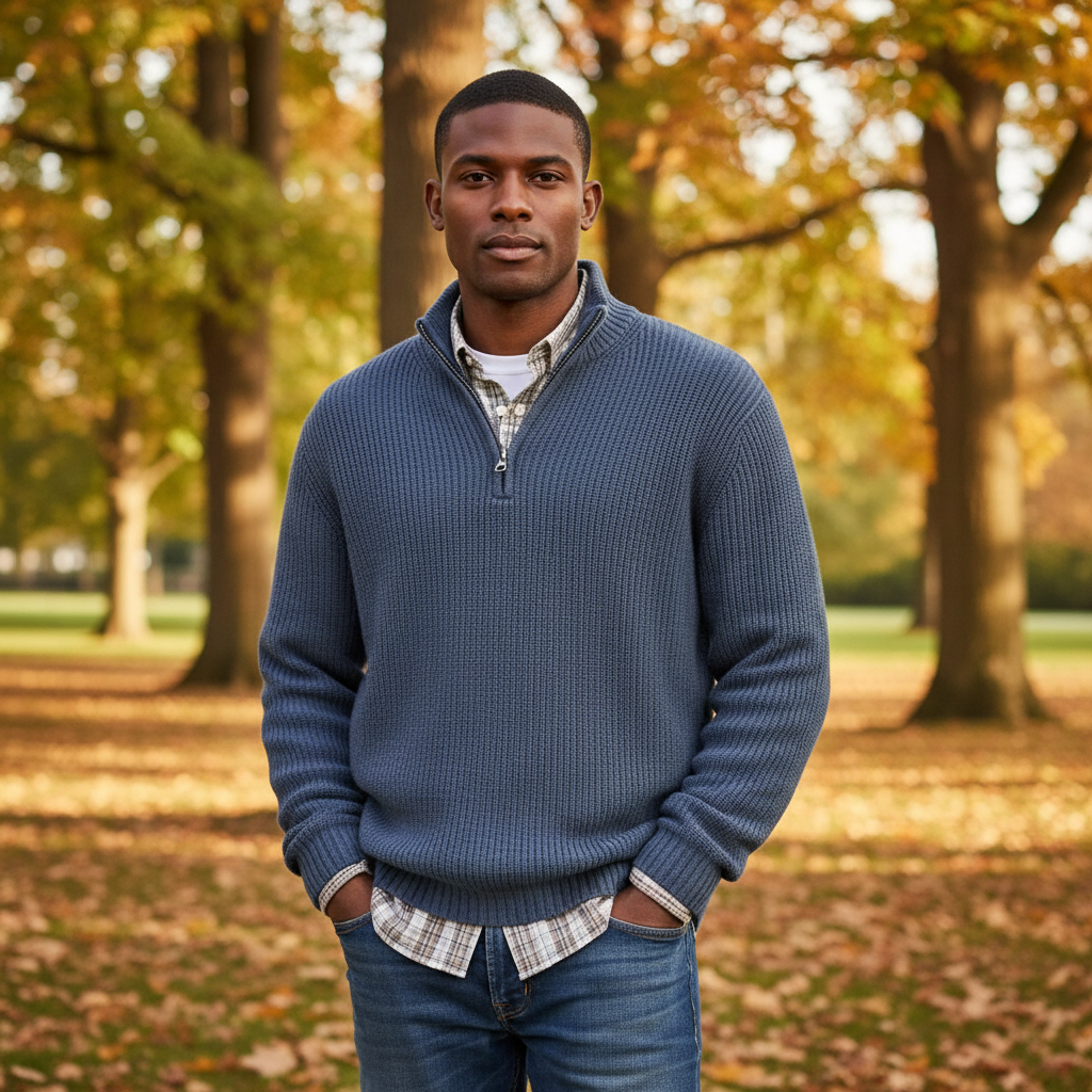 Męski Sweter Kaszmirowy Business Casual z Zamkiem