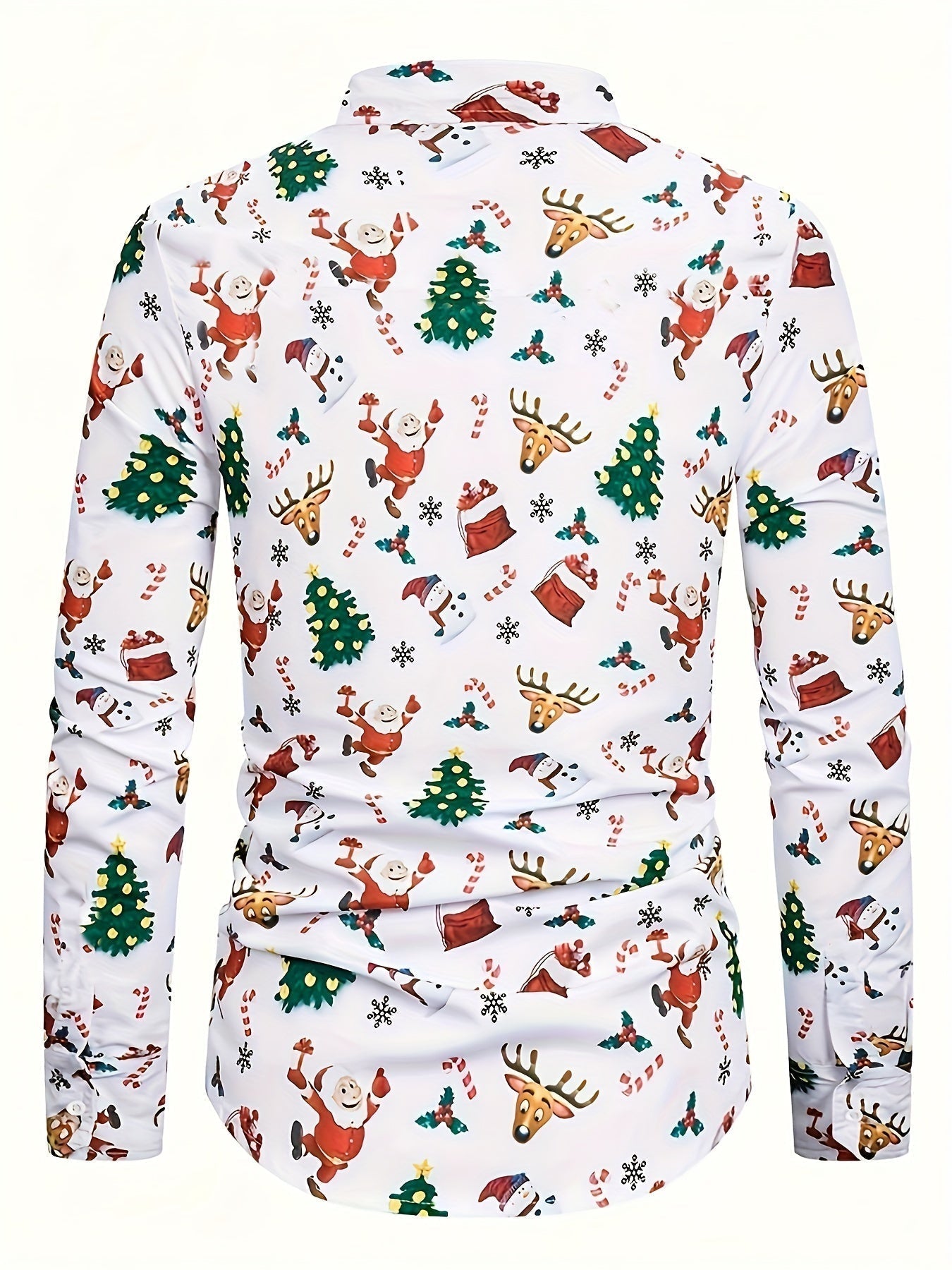 Męska Koszula Świąteczna – Długi Rękaw Elegancka Koszula na Boże Narodzenie