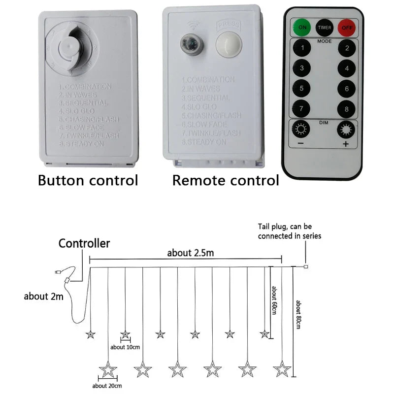 Świąteczne Gwiezdne Kurtyny LED – Oświetlenie Okienne z Gwiazdkami - Ciepły/biały / Sterowanie przyciskami jest zamówione i zostanie wysłane, gdy tylko będzie znowu dostępne w magazynie.