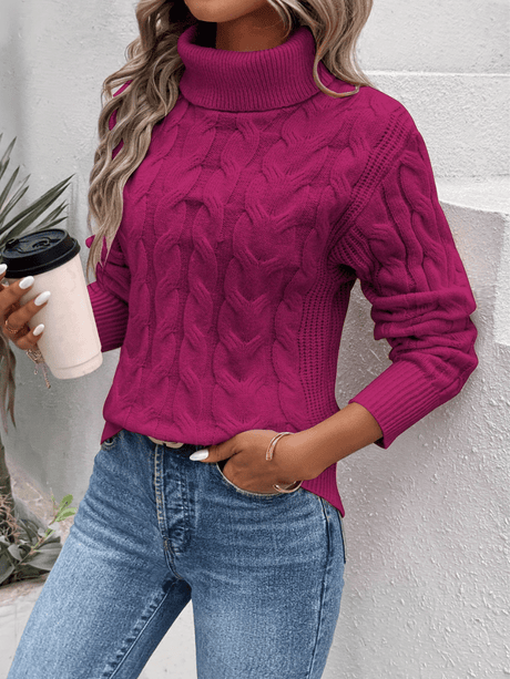 219,99 zł440,00 złNiedostępneDamski sweter z golfem w warkoczowy s...