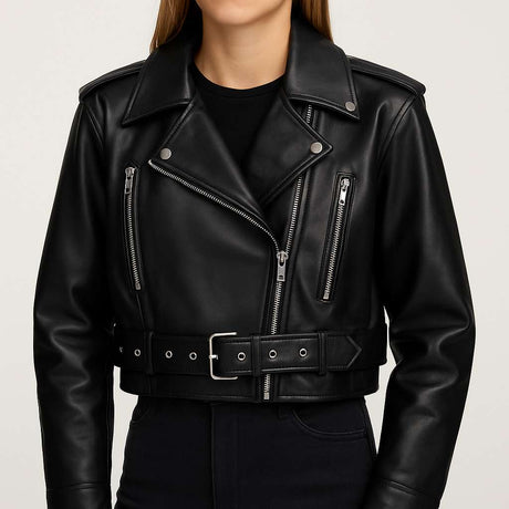 219,99 zł450,00 złNiedostępneDamska krótka kurtka biker z paskiem ...