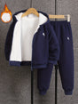 Chłopięcy Zestaw Dresowy z Polaru – 2-częściowy Granatowy Komplet z Bluza z Kapturem i Spodniami