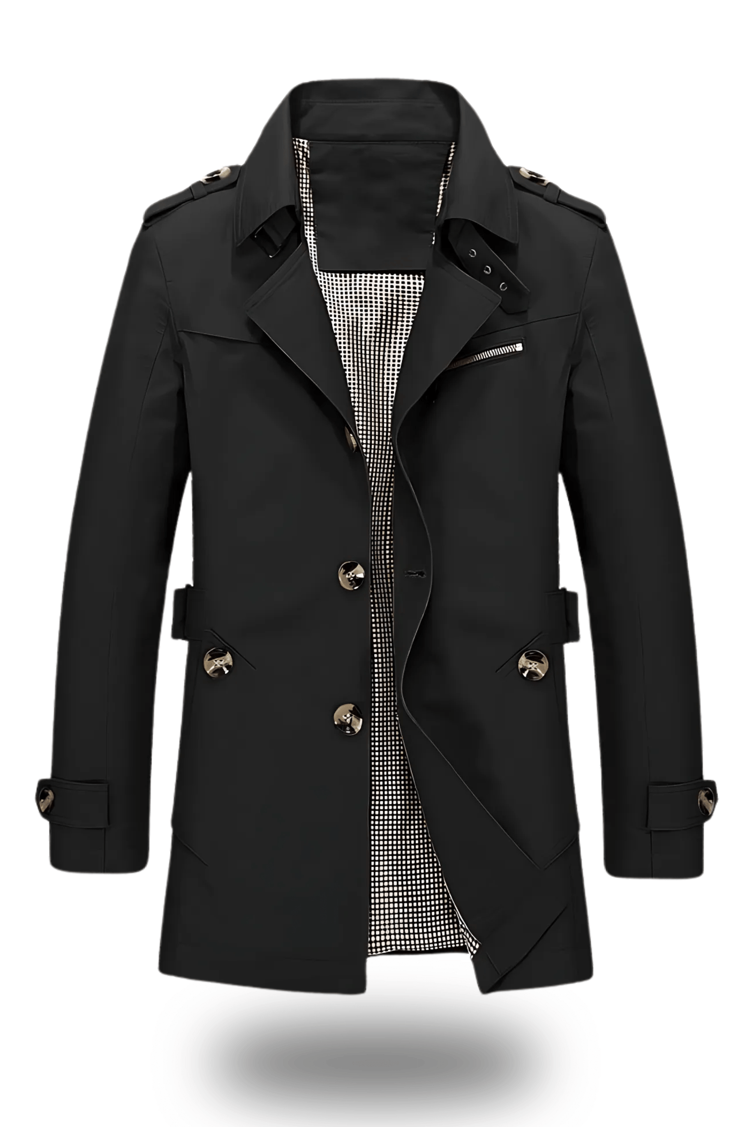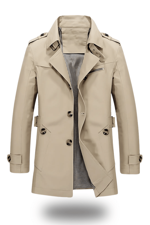 Ten trencz oferuje klasyczną sylwetkę, która nadaje wyrafinowanego wyglądu. Wywijany kołnierz dodaje nuty luksusu, a trwały materiał zapewnia komfort i ochronę przed niekorzystnymi warunkami pogodowymi.