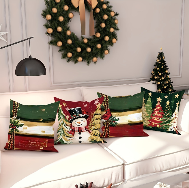 Dodaj swojemu salonowi świąteczny charakter dzięki dekoracyjnym poszewkom na poduszki z motywem Bożego Narodzenia. Wzory z choinkami, bałwankami i zimowymi motywami natychmiast wprowadzą przytulny, bożonarodzeniowy klimat.