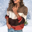 Damski sweter w kolorowe bloki – miękki dzianinowy sweter zimowy o luźnym kroju - Brązowy / S jest zamówione i zostanie wysłane, gdy tylko będzie znowu dostępne w magazynie.